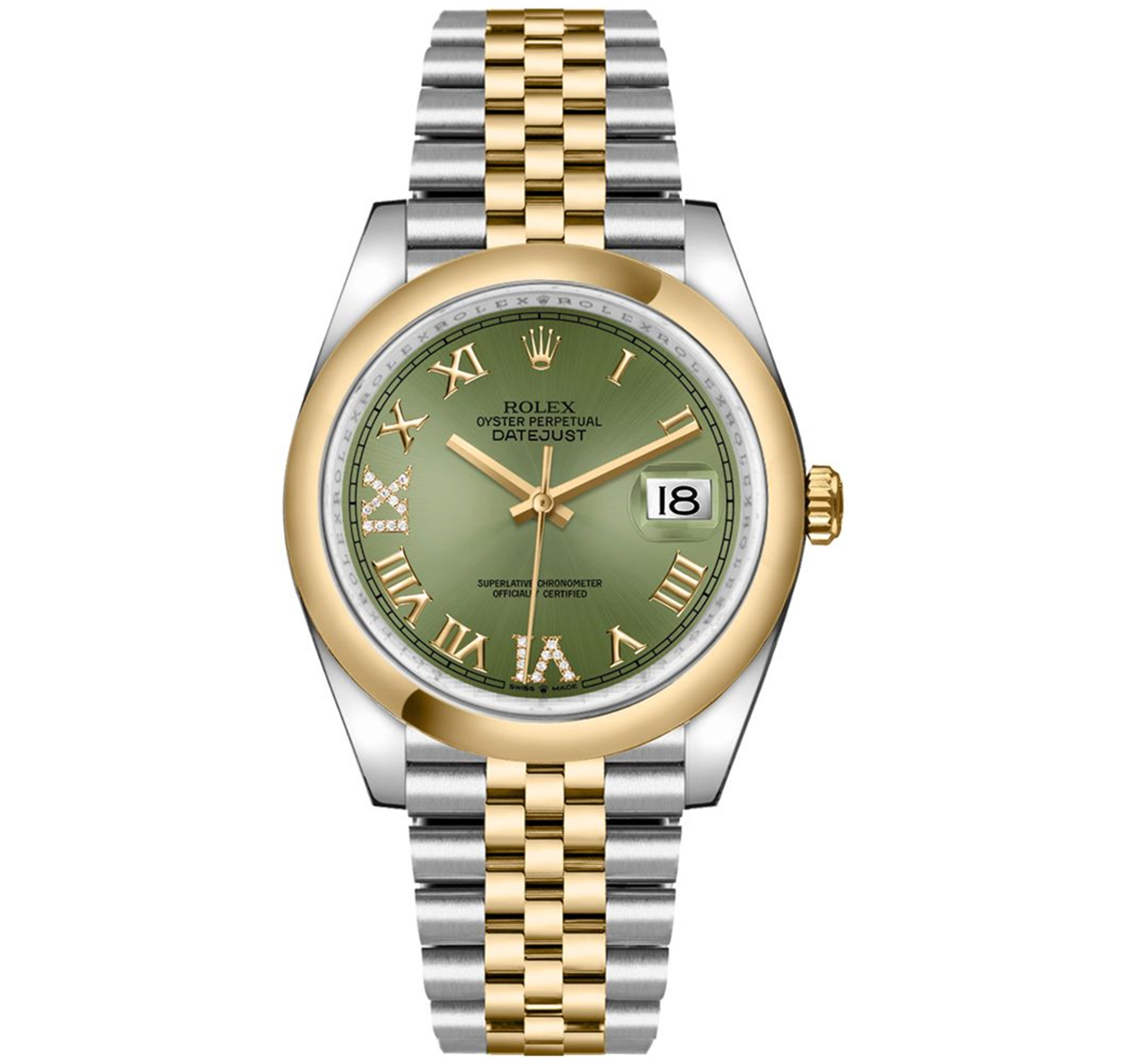 Rolex Datejuste Olive Cadran vert Roman Roman Numinal Hour Markers Réplique Montre 126203 36MM