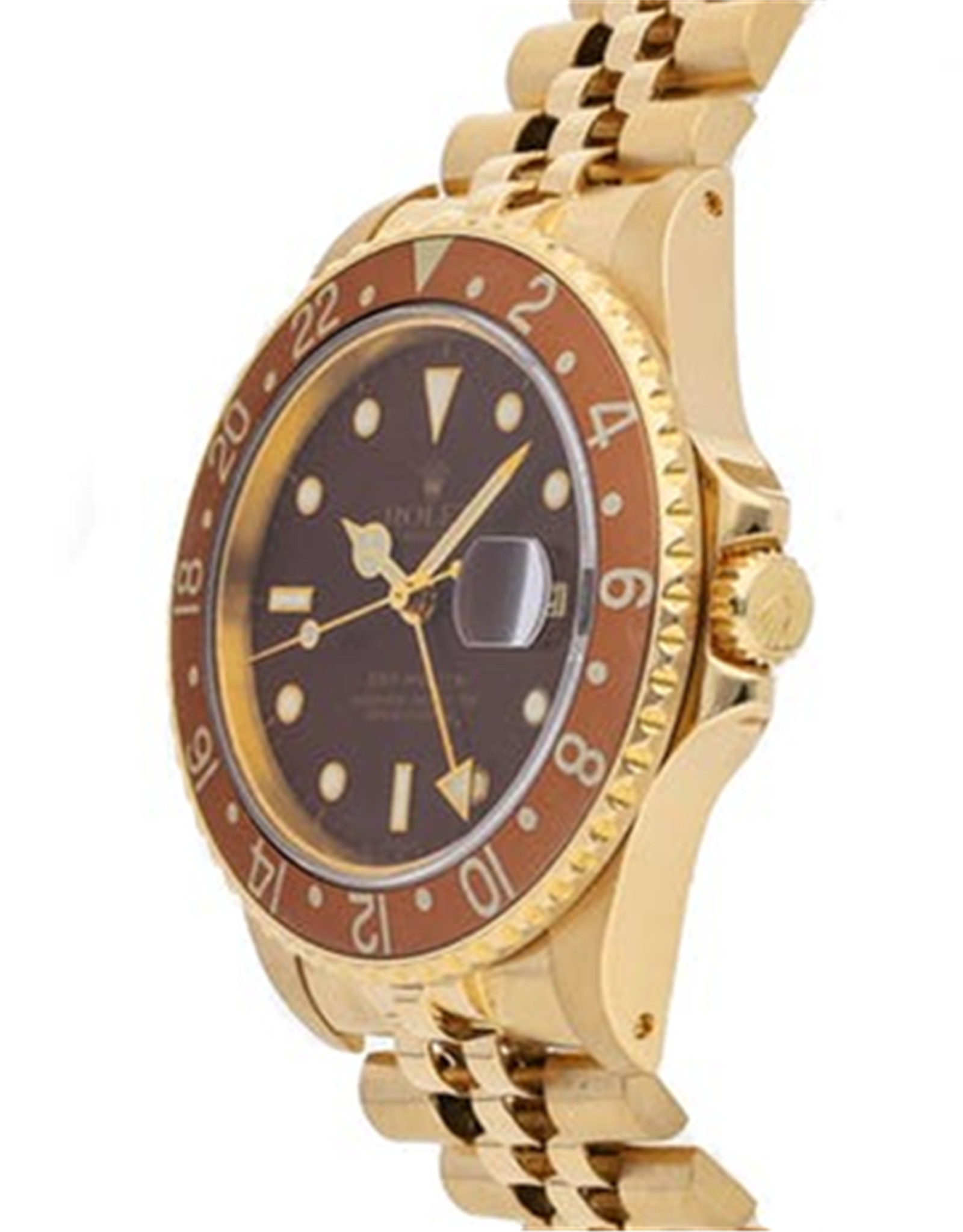 Rolex GMT Master Automatique Réplique Montre Caractéristiques du boîtier en or jaune Cadran marron 40MM
